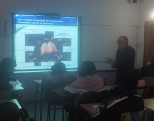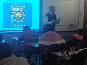 Ayer estuvieron dos profesores jubilados de la Universidad de Zaragoza, que pertenecen al Consejo Aragonés del Movimiento Europeo, dando una charla a 3º ESO.